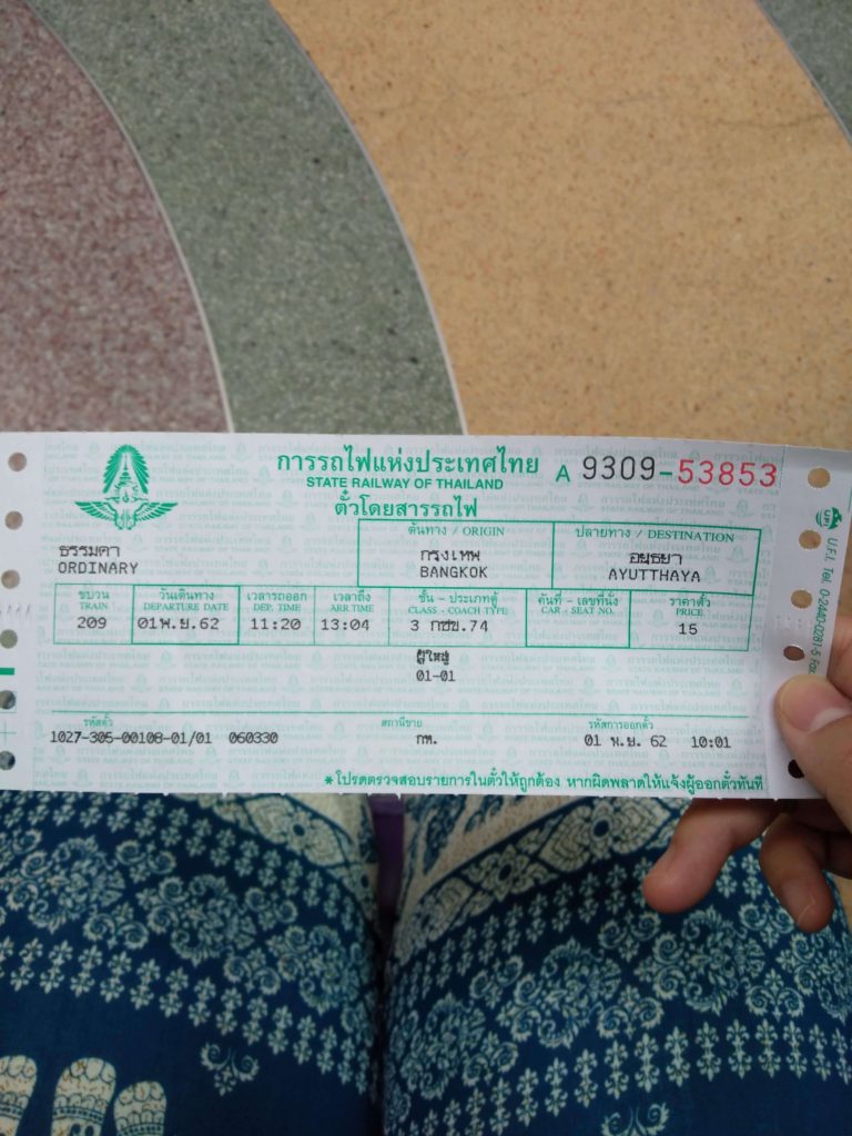 街中を走るスカイトレインや地下鉄もさることながら、バンコク-アユタヤ間がたった20バーツ!